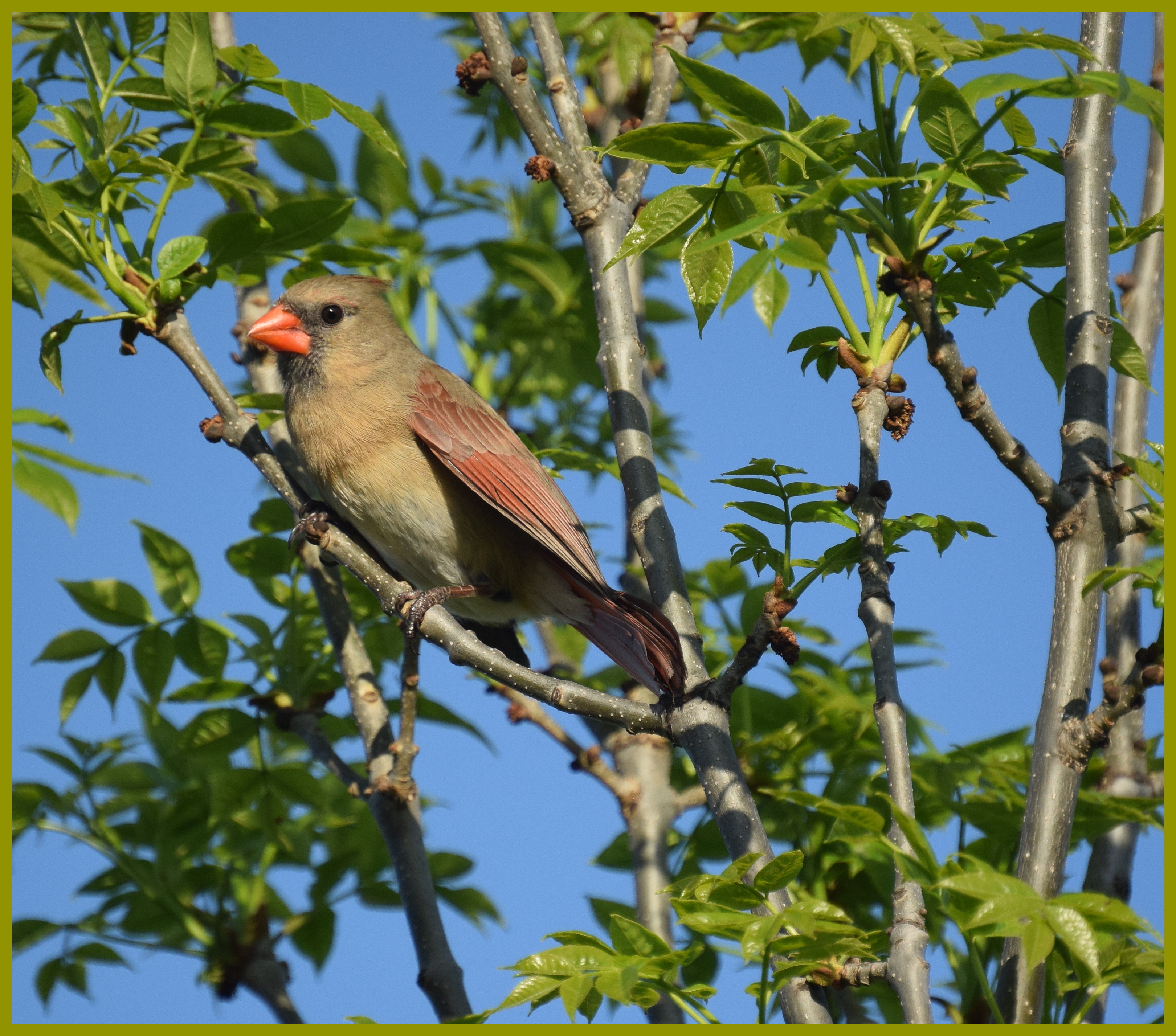 Northern Cardinal May 9, 2016sandyjwhite Birds, Nature, Photos Late afternoon sun gives this female cardinal a golden glow. Share this: Click to share on X (Opens in new window) X Click to share on Facebook (Opens in new window) Facebook Like Loading...