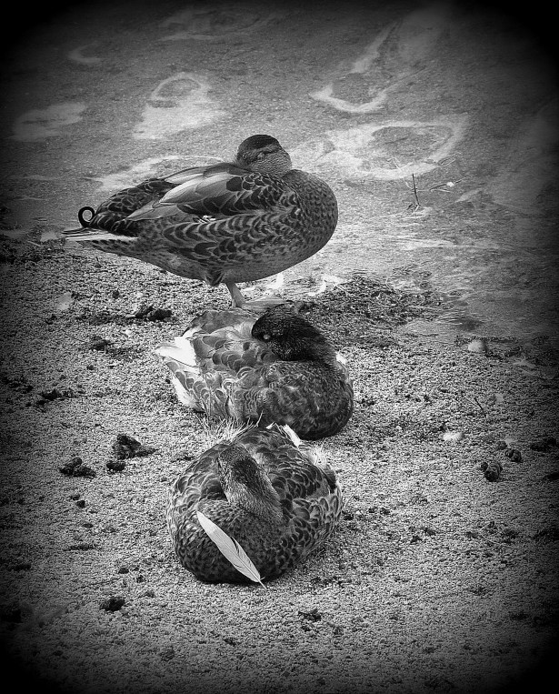 All beautiful shots Sandy, and the black and white gives a different atmosphere. I like the interesting textures in the photo of the sleeping ducks, and the hummingbird is perfectly poised. LikeLiked by 1 person