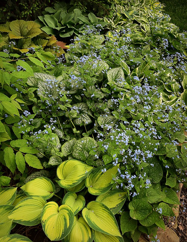 Those little blue flowers are so dainty. Beautiful green garden 😀
