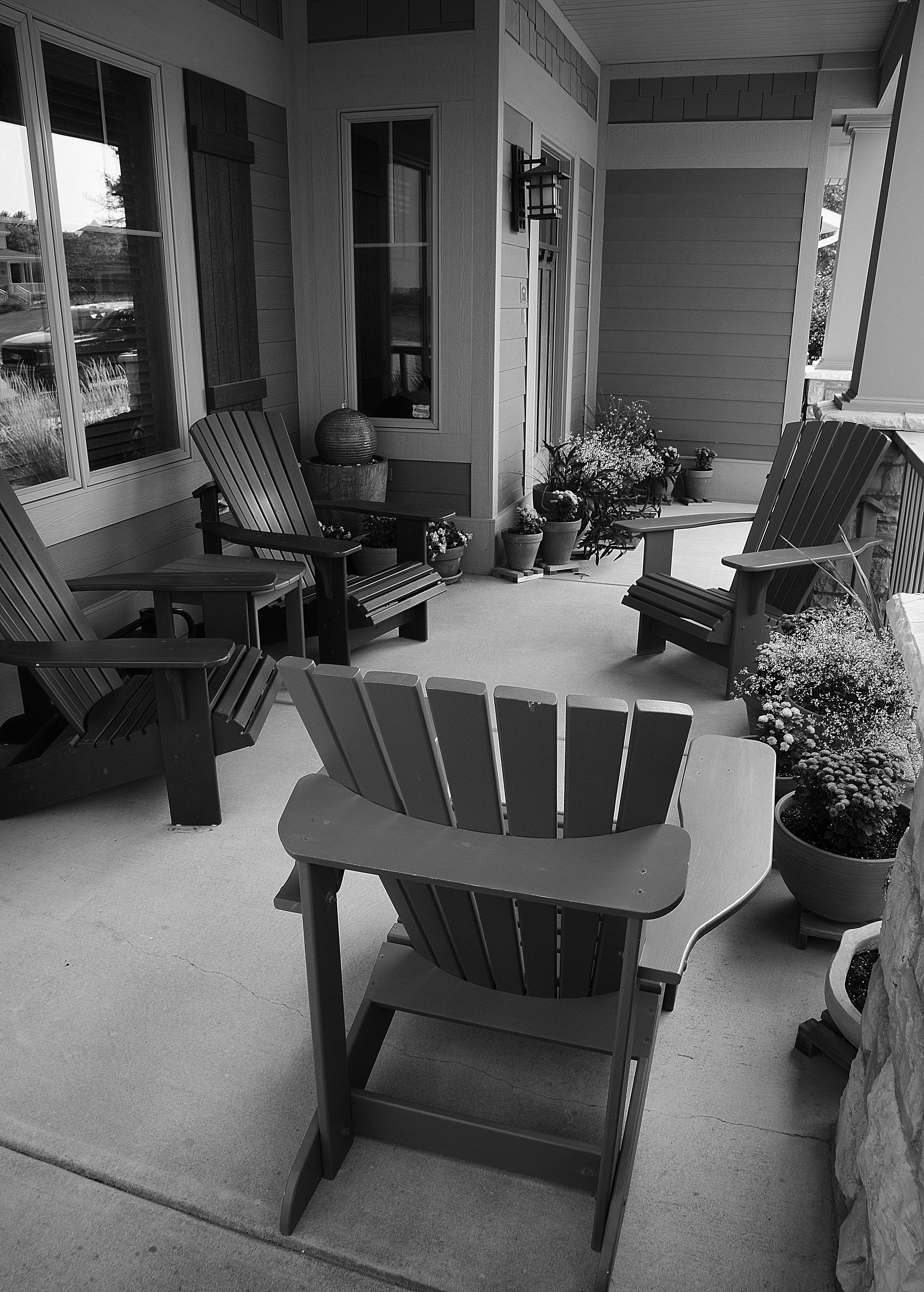 A wonderful porch to retreat. Beautiful BnW image.