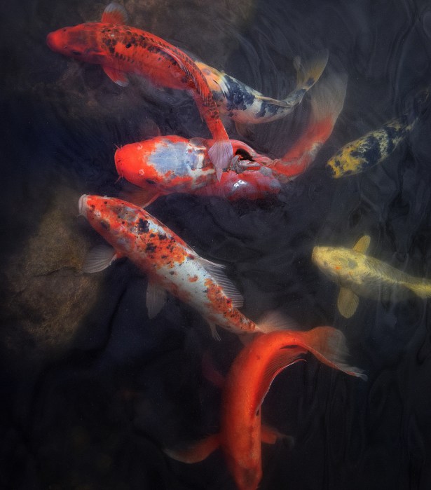 Koi Return To The Reflecting Pool April 23, 2022sandyjwhite Nature, Photo Challenge, Photography, Photos Tags: 6WS, Fish, Gardens, SixWordSaturday Six Word Saturday